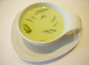 続いては空豆とアスパラの冷たいポタージュ。