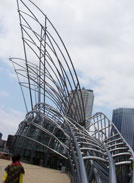 左手の方のビルは生ビールのジョッキを見立てて造られたんだとか。