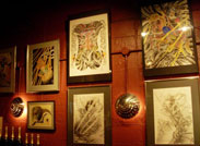 店内では彫り師の方々が描いた絵が飾られていて、