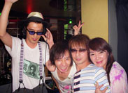 ときどきDJしに来てくれる準メンバーのいしだ壱成君とモリラッピンの4人で記念写真。